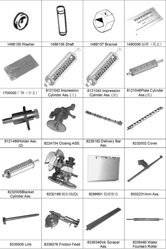 Estamos encantados de ofrecer todo tipo deParte de repuesto para la imprenta offset Solna 25 (483x640 mm), Solna 28 (520x720 mm) alimentada con láminasSólo nos informa de la parte no. , el modelo de la máquina y la edad.